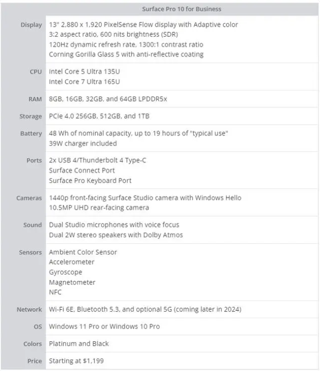 作为面向企业的电脑,微软不会直接向个人消费者出售Surface Pro 10和Surface Laptop 6,也就是说,在Target或者Best Buy这类零售商渠道买不到这两款PC,只能在微软网站或者商用经销商处购买。
