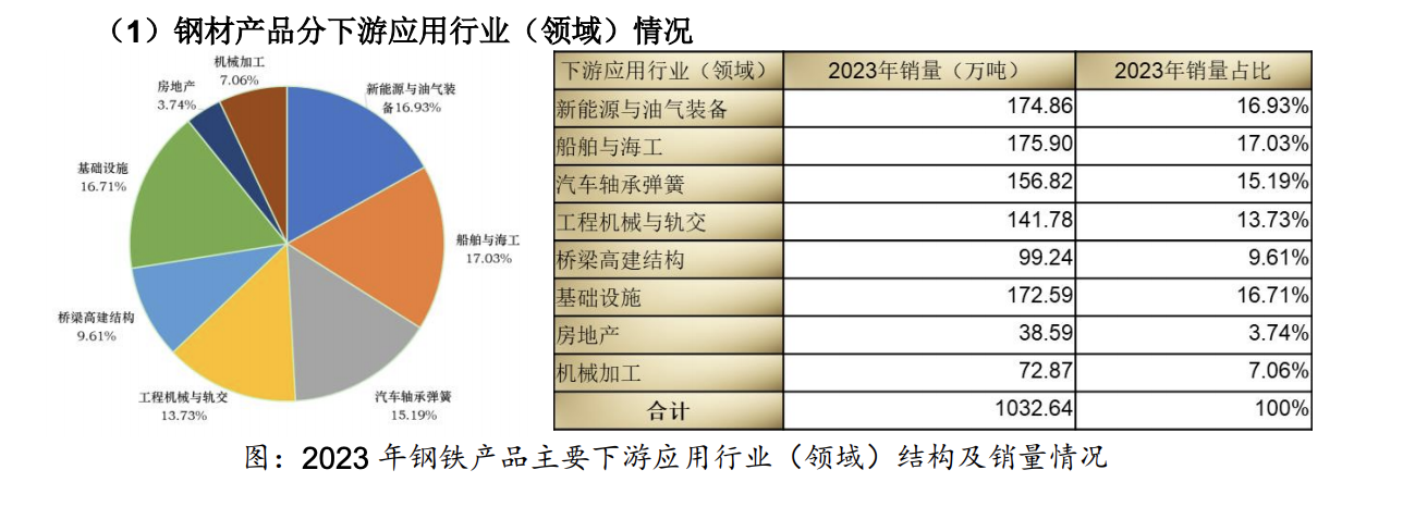 其瞄准中国制造业升级及进口替代机会,以专用板材、特钢长材为主导产品,聚焦研发与推广高强度、高韧性、高疲劳性、高耐磨性、耐腐蚀、易焊接等钢铁材料,广泛应用于油气装备、新能源、船舶与海工、汽车轴承弹簧、工程机械与轨交、桥梁高建结构等行业。