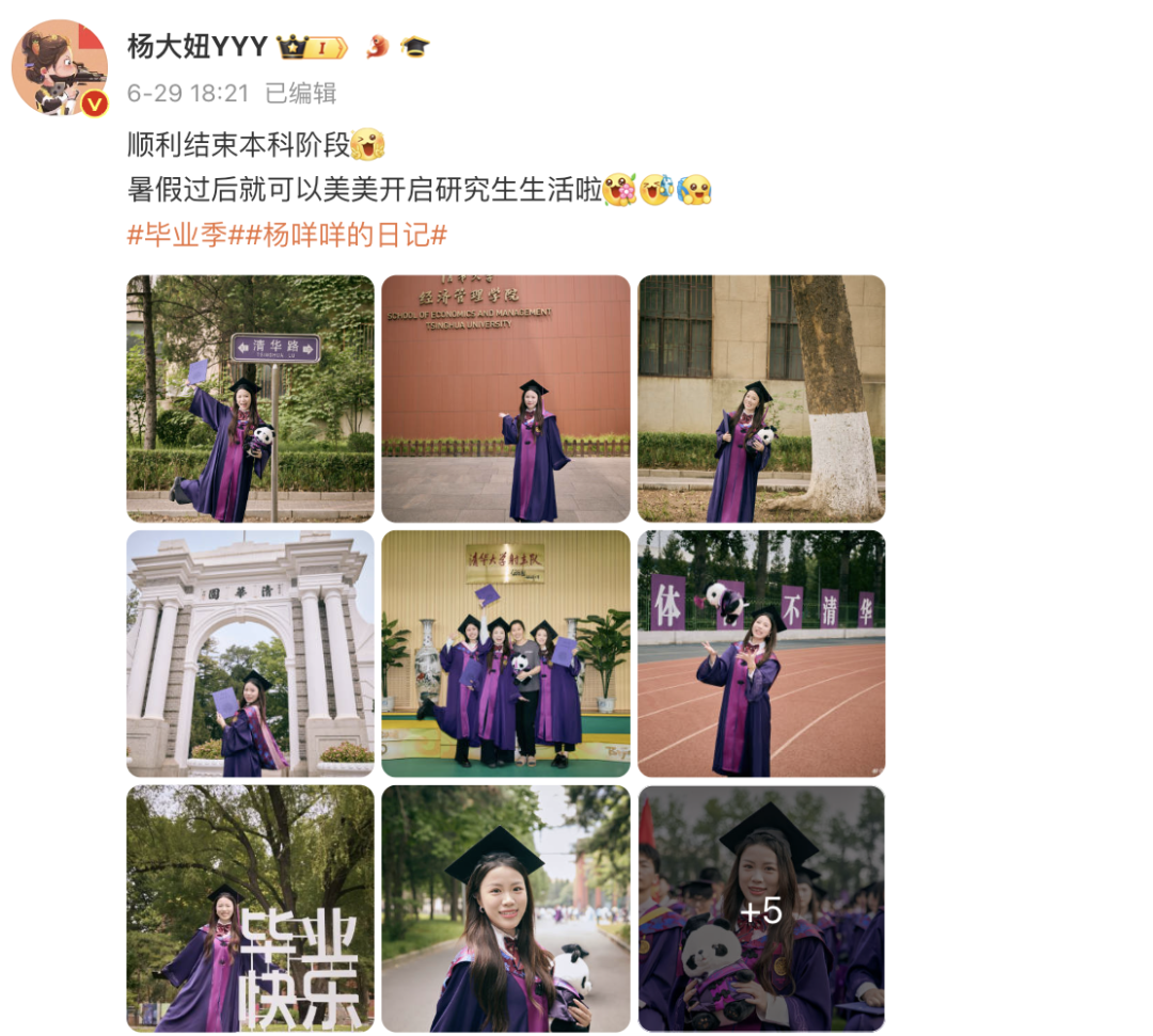 “她将在清华继续深造,毕业快乐